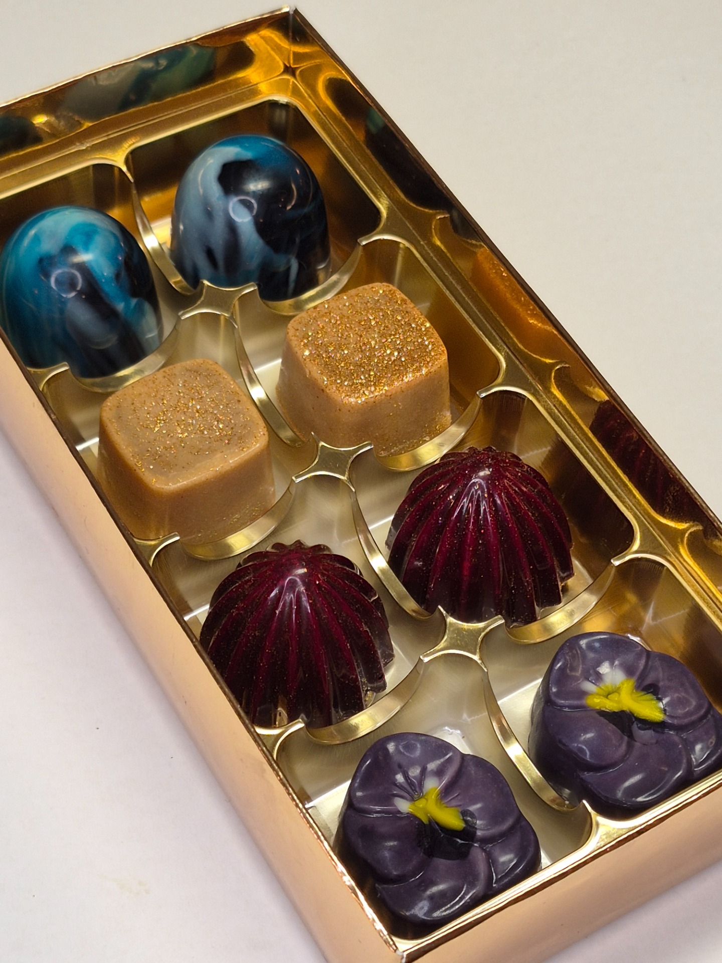 Mina praliner är målade med naturliga färgämnen 😀